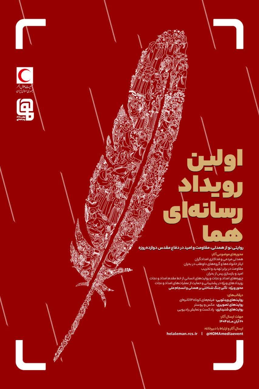 عنوان «هُما» برگرفته از سه واژه «همدلی، مقاومت و امید» است و این رویداد در چند بخش شامل فیلم کوتاه (حداکثر ۱۱۲ ثانیه)، عکس، پوستر و پادکست برگزار میشود و شرکتکنندگان میتوانند آثار خود را حداکثر تا ۲۰ آبان ماه ۱۴۰۴ به نشانی helaleman.rcs.ir یا صفحه مجازی @HOMAmediaevent ارسال کنند.