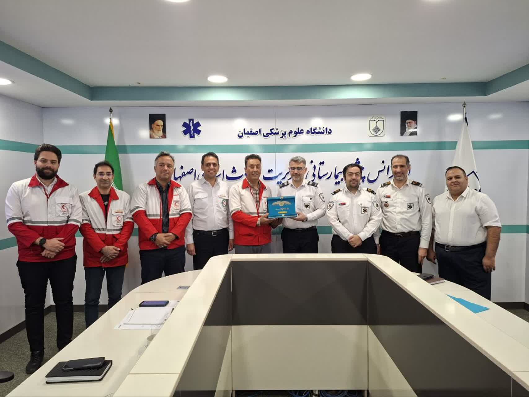 در پایان، در قدردانی از همکاریها و تلاشهای مستمر، تندیس یادبودی از سوی اورژانس به جمعیت هلالاحمر استان اهدا شد.